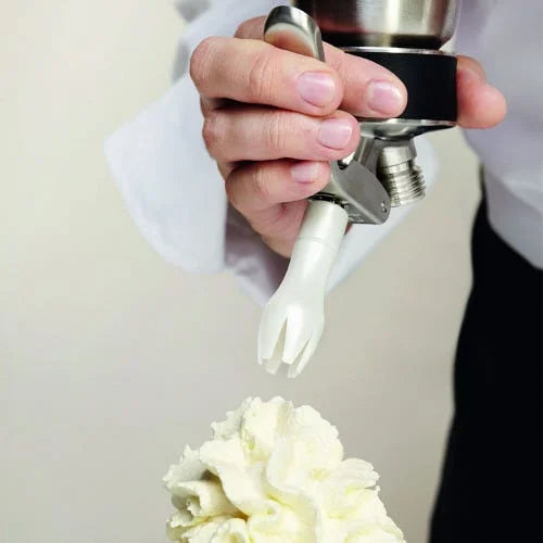Dê acabamento profissional ao chantili e às espumas. O bico Tulipa cria flores e “montes” volumosos com bordas suaves, rosquear rápido no sifão e ampla compatibilidade com os principais modelos